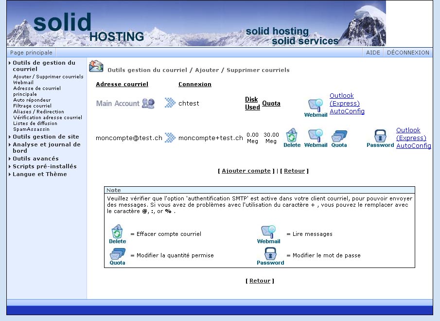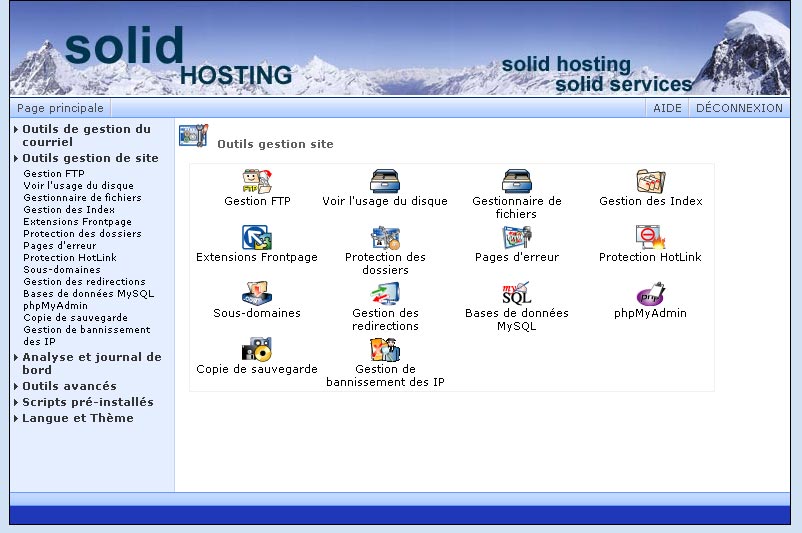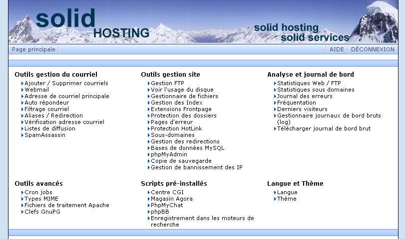 Le panneau de contrôle est disponible dans de nombreuses langues : anglais, français, allemand, italien, espagnol, portugais, ... et plusieurs thèmes sont à choix.